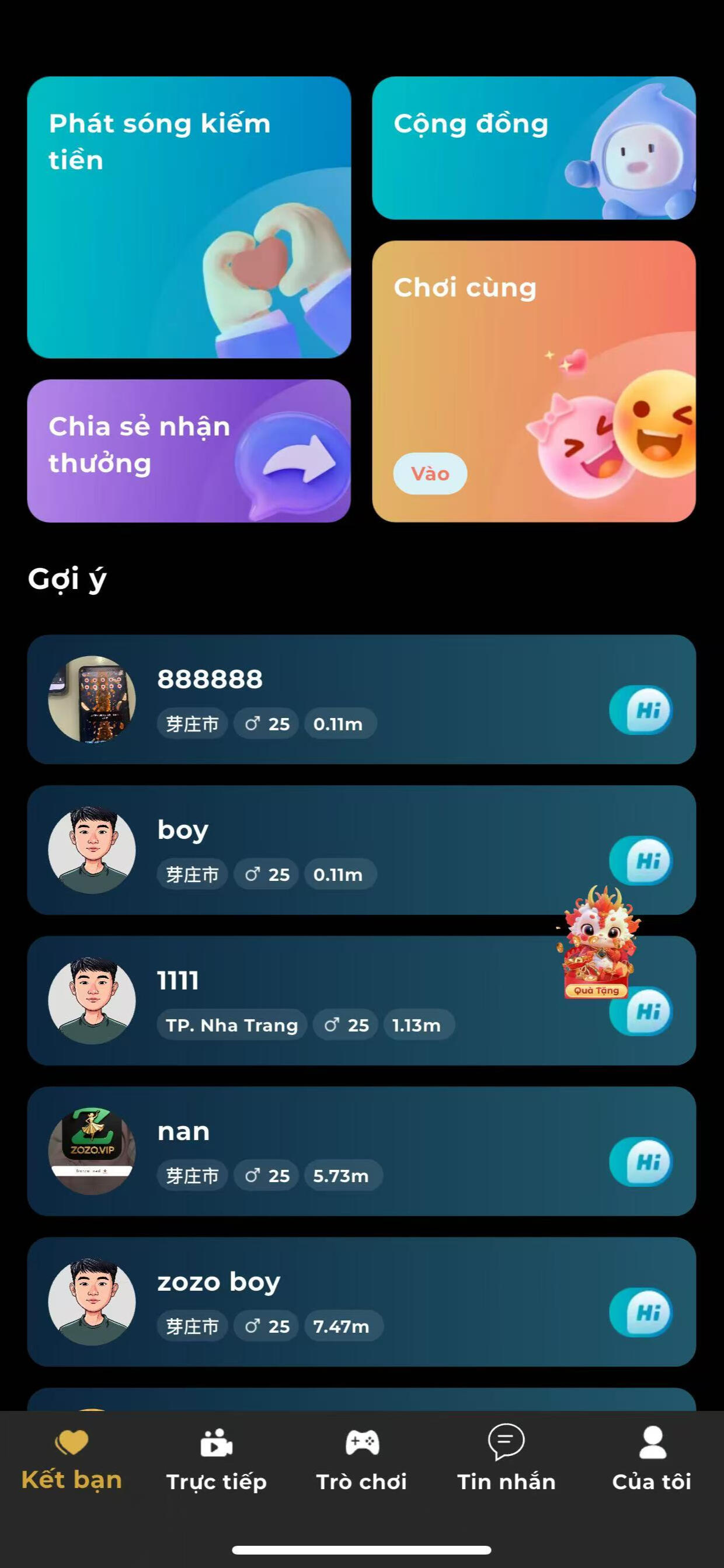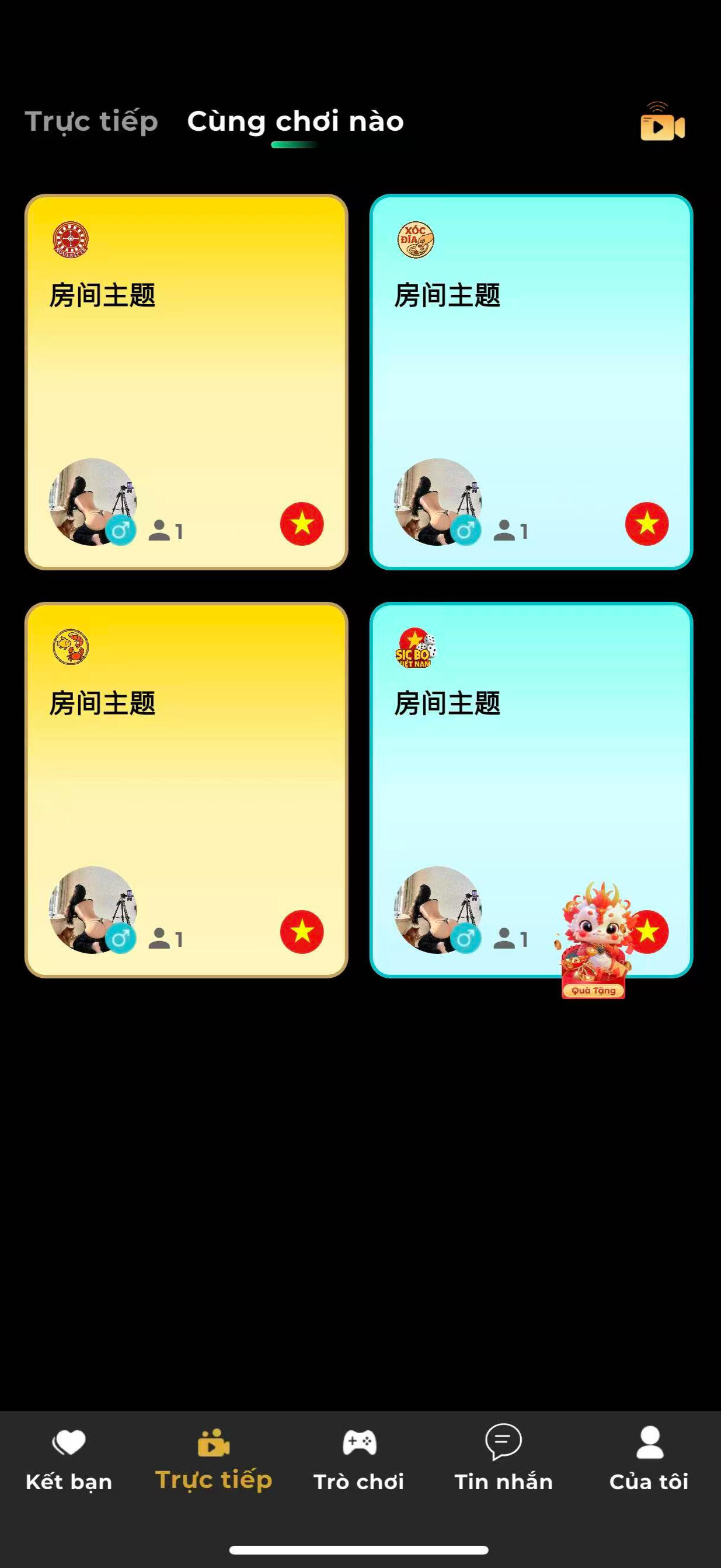 用户可以创建聊天/游戏房间,并通过下注、礼物和互动赚取收益.